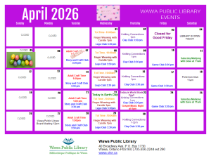 If your interested in the workshop please register at the Wawa Public Library as spots are limited.
